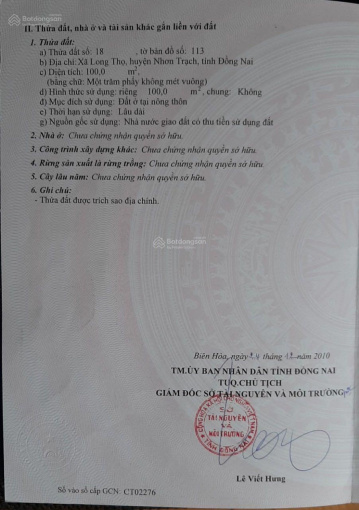 01 lô duy nhất HUD Nhơn Trạch - đg 12m thông - 6x20=120m2 - chốt 1.1 tỷ.