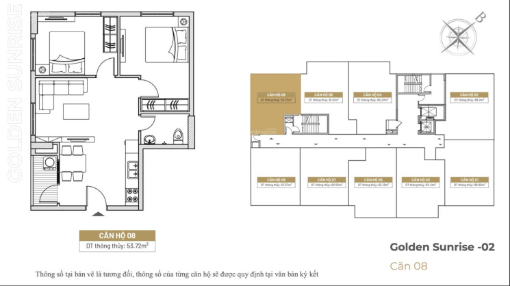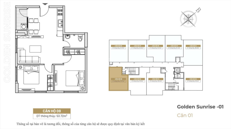 Diện tích linh hoạt: Từ 54m2 - 70m2.