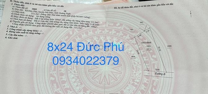 383m² có 200m² TC ở Đức Phú, Mộ Đức, Quảng Ngãi: giá chỉ 320tr