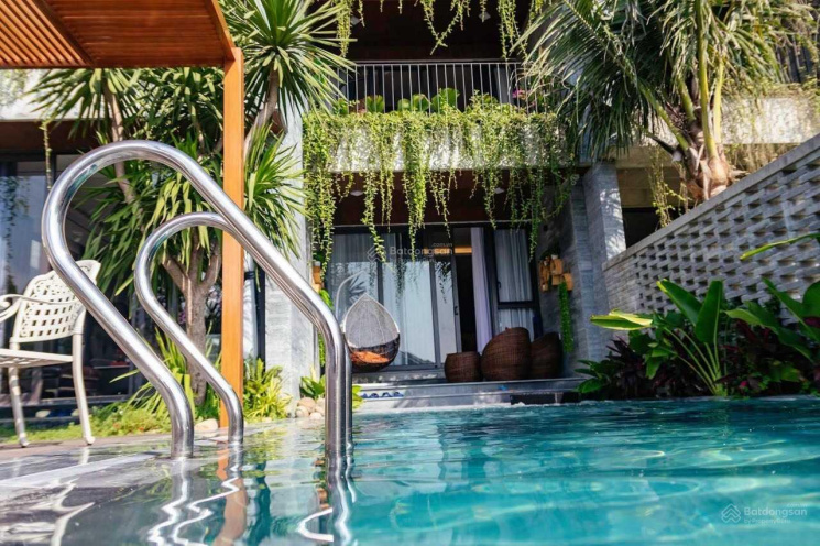 Biệt thự đã hoàn thiện mặt ngoài, bên trong bàn giao thô, có sẵn móng hồ bơi, khách hàng có thể về thiết kế nội thất theo ý của mình.