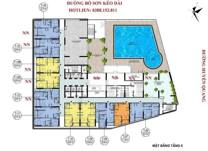 Bể bơi: Khối đế tầng 5.