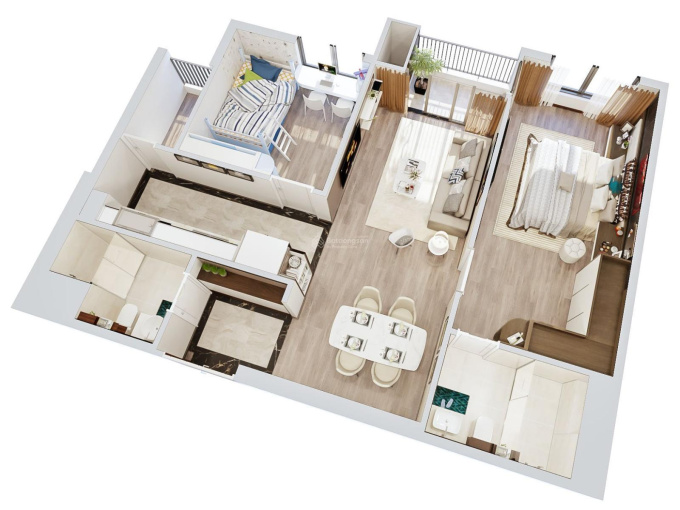 Đặc biệt căn hộ này được coi là căn hộ đẹp nhất trong các căn 2 ngủ của dự án với phòng ngủ rất rộng và cửa sổ lớn đón ánh sáng trực tiếp, bếp, 2 logia riêng biệt.
