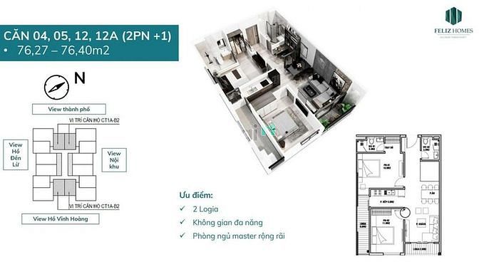 Bán căn 76m2 cc Feliz Homes 279 Hoang Mai giá 2 tỷ 960 bao phí.
