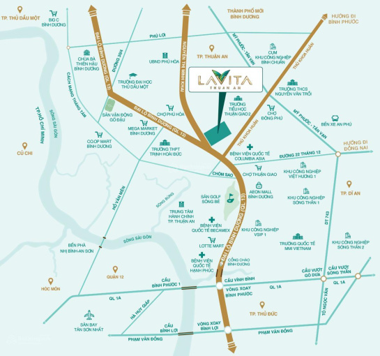 Chung cư lavita Thuận An nằm ngay giao giữa đường Nguyễn Thị Minh Khai và Quốc Lộ 13.