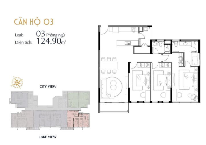 Căn 3PN: 123m2.