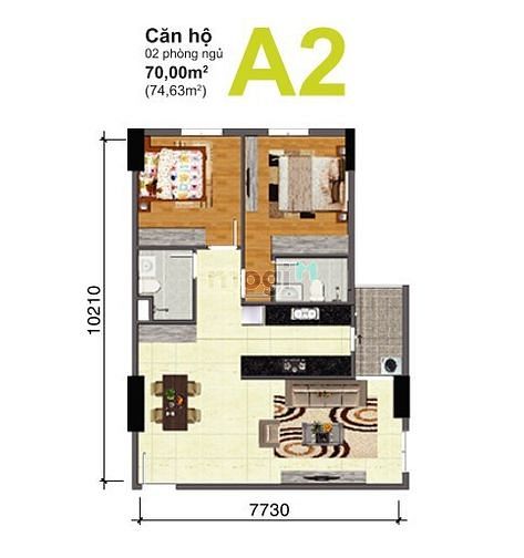 - DT: 75m2, 2PN, 2WC, có ban công, sân phơi,view thoáng mát.