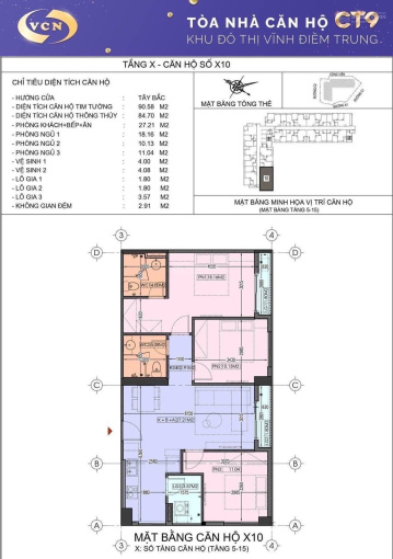 * Bán căn hộ 3 phòng ngủ CT9 Vĩnh Điềm Trung.