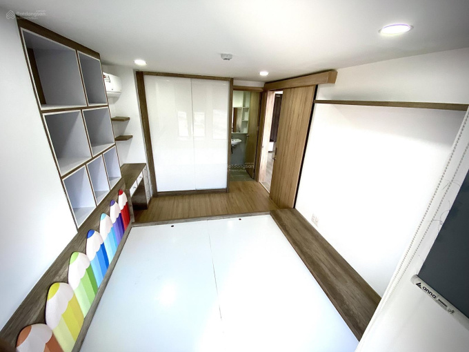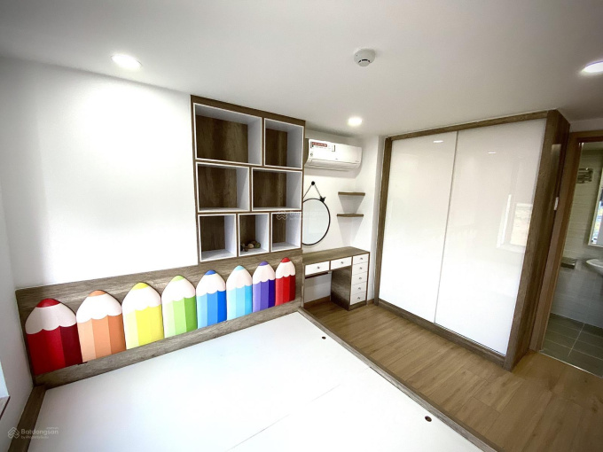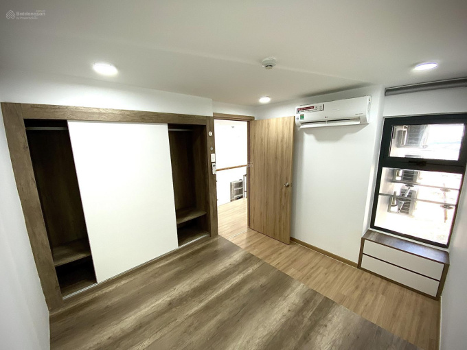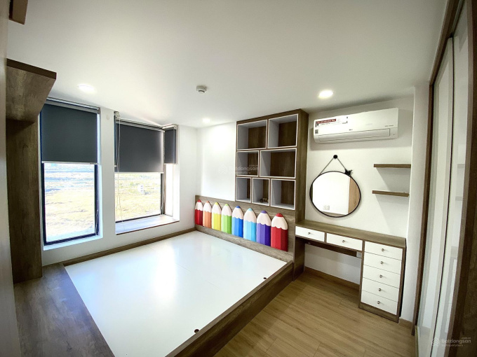 Nội thất: giường, tủ gỗ lõi xanh kháng ẩm An Cường, cánh Acrylic trắng, sàn gỗ Egger chống nước, máy lạnh LG (đã vệ sinh), rèm...