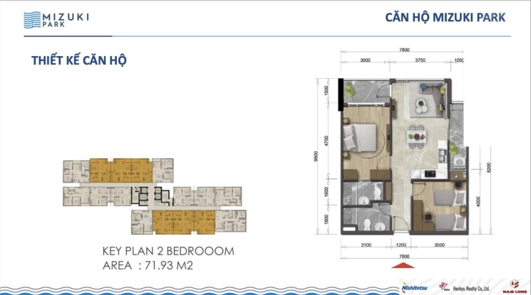 - Diện tích: 78m2, 2PN, 2WC giá từ: 3 - 3,1 tỷ/căn. (Còn 3 căn).