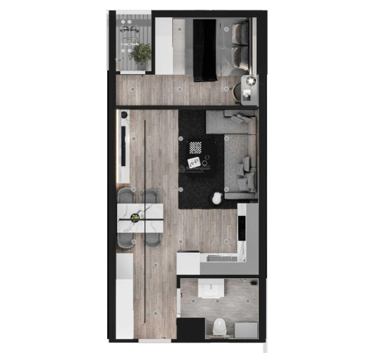 - Thiết kế: 1PN + bếp + ban công + nhà khách thoáng mát. Phòng rộng có thể làm vách ngăn thêm 1pn được ạ.