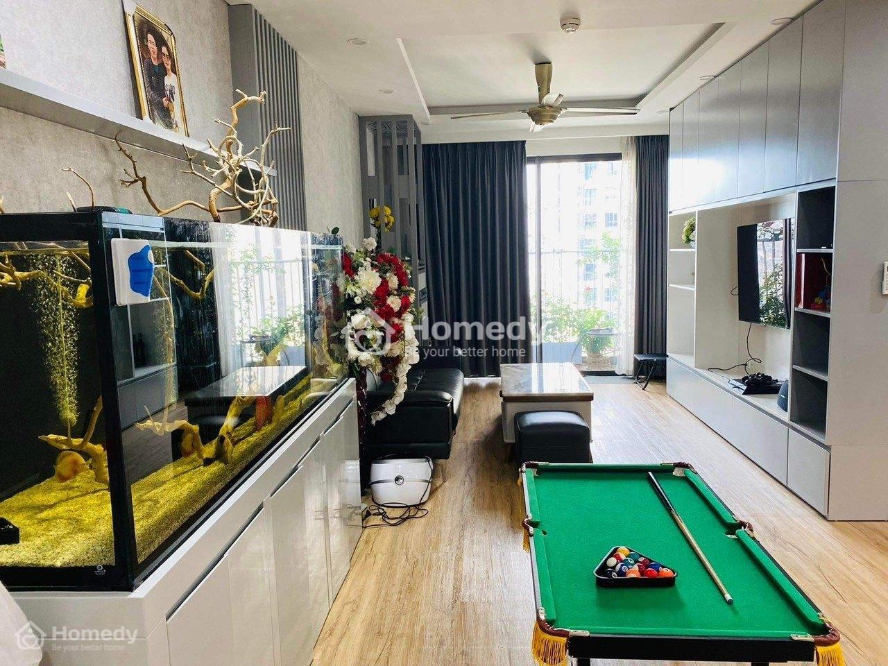 Diện tích: 74m2, bao gồm 2 phòng ngủ, 2 phòng tắm và 1 phòng khách, căn hộ nằm tại lầu cao lô B, có ban công hướng Đông Nam tuyệt đẹp. Nhà đã được trang bị nội thất cơ bản của Chủ Đầu Tư như: Ván lót sàn 2 phòng ngủ, máy lạnh âm trần, tủ kệ bếp, tủ giày, tủ quần áo, tủ kệ bếp, bếp từ, máy hút mùi, video call và các thiết bị trong phòng tắm. Đảm bảo Quý khách xem nhà sẽ ưng ý ngay.