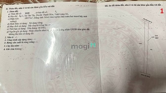 Bán đất cặp Quốc Lộc 62, Mặt tiền 40x500mét.Diện tích 18,927 mét vuông