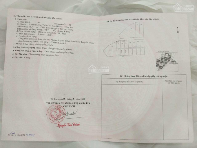 - Thửa đất số 1125, tờ bản đồ 24, lô 125/B2. Giá 1,050 tỷ (100m2).