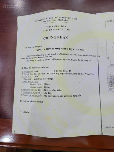 Bán đất nền dự án Lan Anh 1 2 5 6 xã Hòa Long, Bà Rịa.