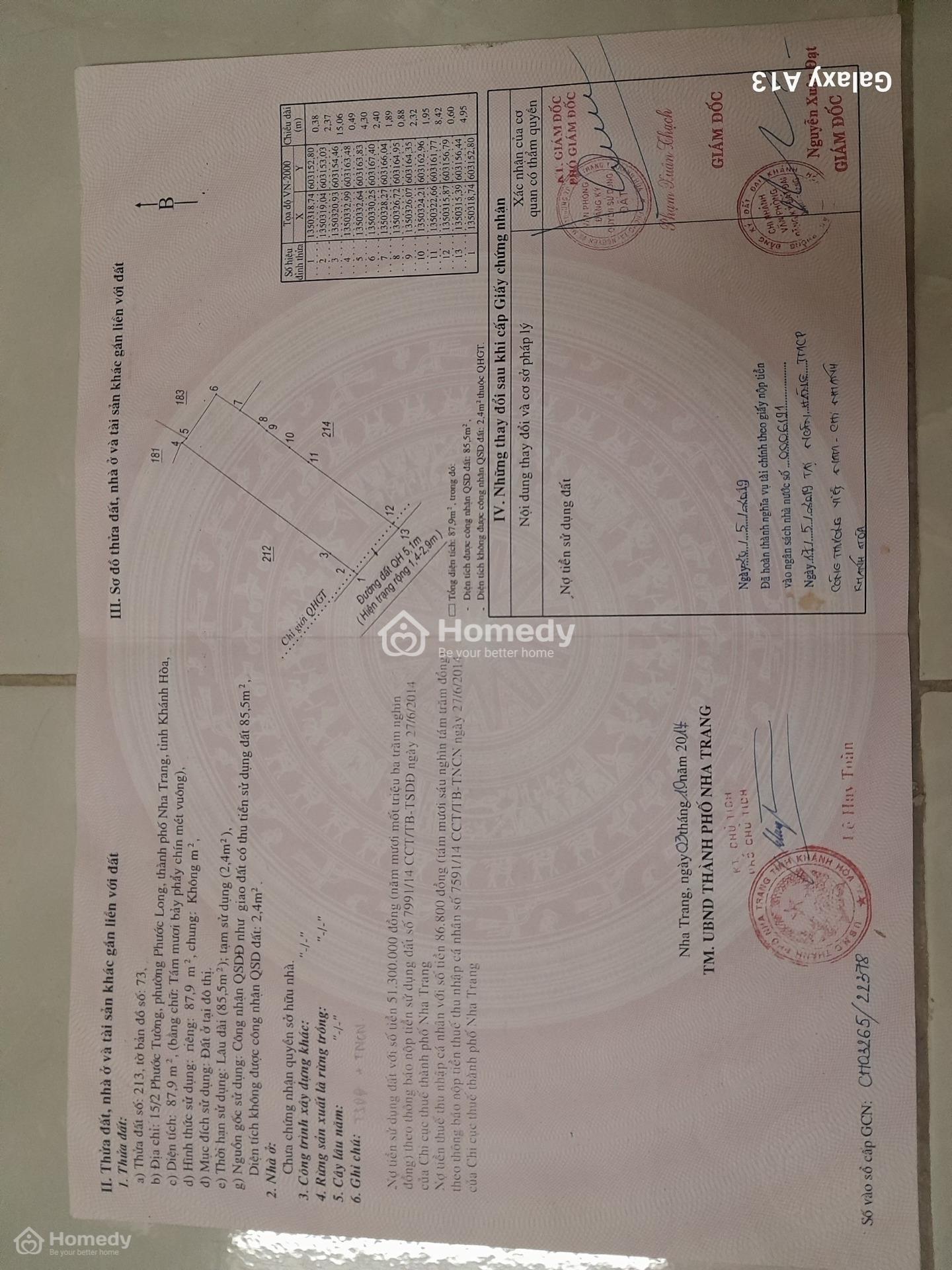 - Diện tích: 87,9 m2 - sau quy hoạch: 85,5m2