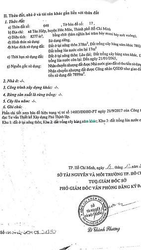 Tổng diện tích: 8,277m2 (Trong đó có 378m2 đất thổ phần còn lại là đất trồng cây.