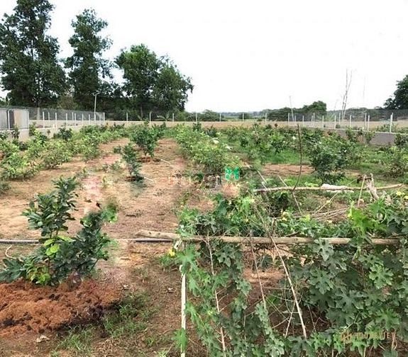 Đất vuông vức đã rào hàng rào , đang trồng mít xoài