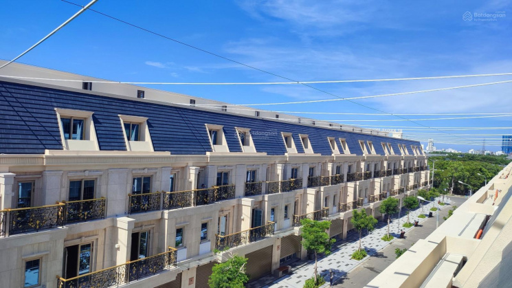 Nhà được xây dựng đồng bộ trên tuyến phố Pavillon đẳng cấp, ốp đá toàn bộ mặt ngoài màu gold sang trọng.