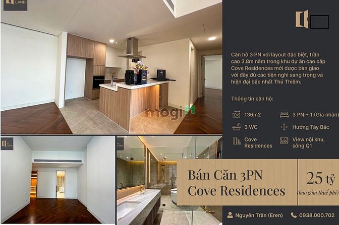 🤝 Bán: Cove Residences 3 Phòng ngủ - 136m2 – 3PN+1 phòng Gia nhân, phòng khách + Phòng ngủ Master siêu rộng.