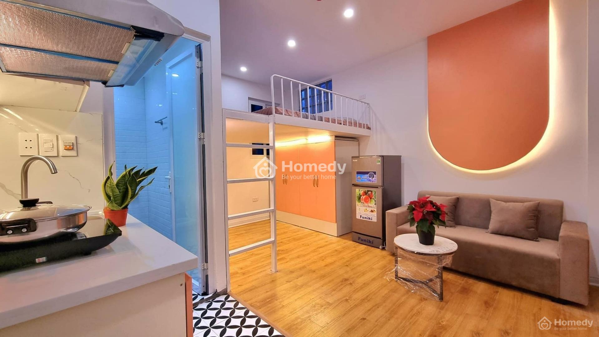 + Nhà lợi thế 2 mặt thoáng trước sau nên các phòng ngủ đều có cửa sổ thông thoáng, ngập tràn ánh sáng tự nhiên. Các căn hộ đều được trang bị full nội thất: giường, tủ, chăn, đệm, bếp, hút mùi, tủ lạnh, máy giặt, wifi...