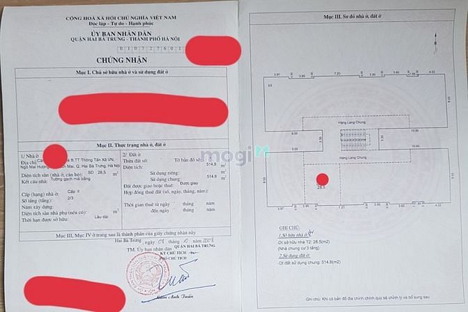 Diện tích trên sổ 28.5m² diện tích thực tế 55m² xây rất vuông vắn. Thiết kế làm 1 wc 1 bếp, 1 phòng khách và 2PN.