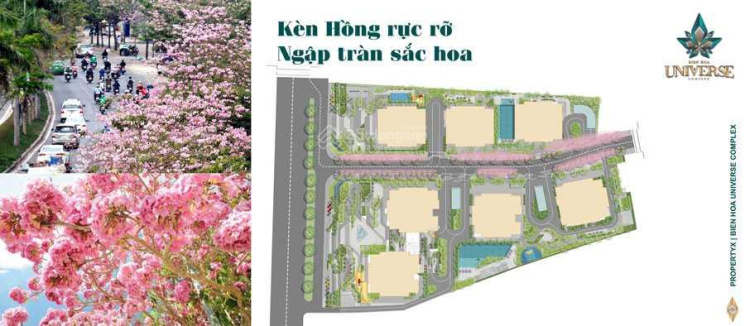 Nổi bật là đường hoa kèn hồng dài gần 800m tại đường trung tâm dự án Biên Hòa Universe Complex để cư dân có thể checkin, dạo bộ, thư giãn và tập thể dục.