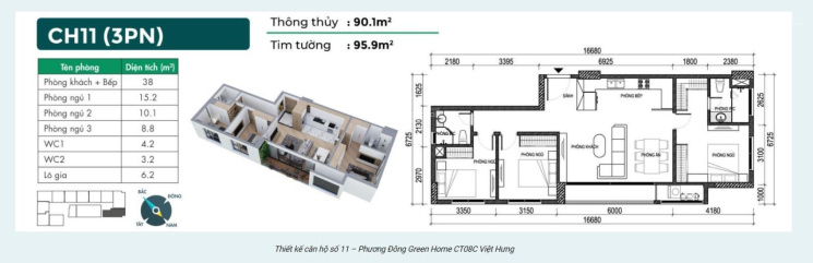 căn góc 3 phòng ngủ 2 vệ sinh 95,9m2 ban công cực thoáng view trực diện công viên việt hưng hồ Kim Quan.