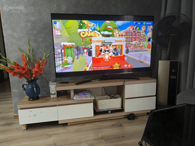 Nội thất: Bàn giao sàn gỗ, trần, thiết bị chiếu sáng, tủ bếp, bếp từ, bếp hút mùi, full thiết bị nhà vệ sinh, điều hòa, bình nóng lạnh.