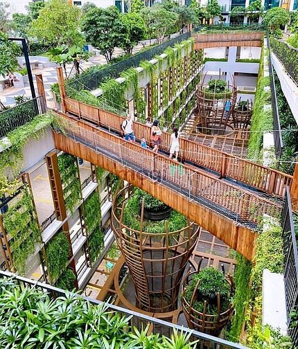 Nhiều cây xanh, không khí trong lành, thoáng mát.