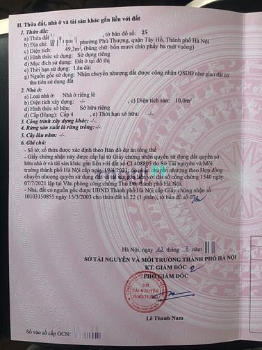 Cần bán mảnh đất ở 315 An Dương Vương, Tây hồ, hn