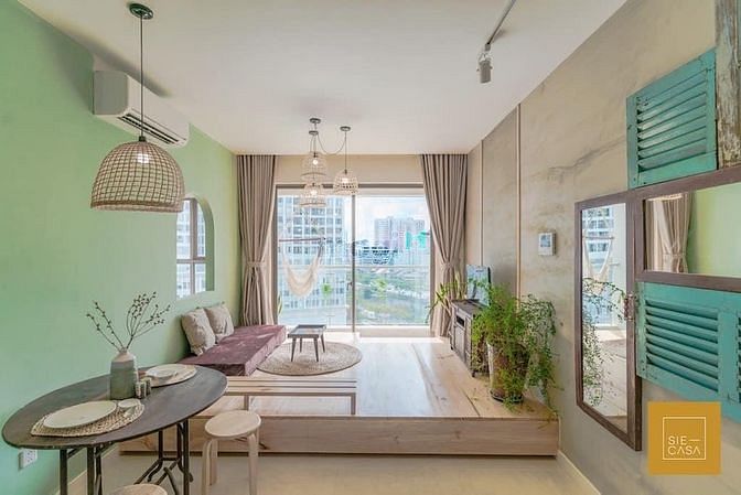 - Thiết kế 1 phòng ngủ, 1 toilet, ban công phòng khách rộng, 1 logia