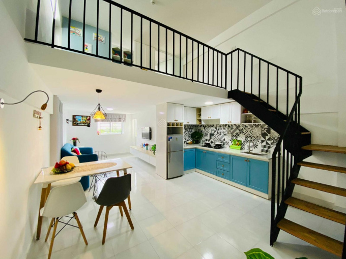Diện tích 52m2 có gác lửng, thang máy thẻ từ riêng.