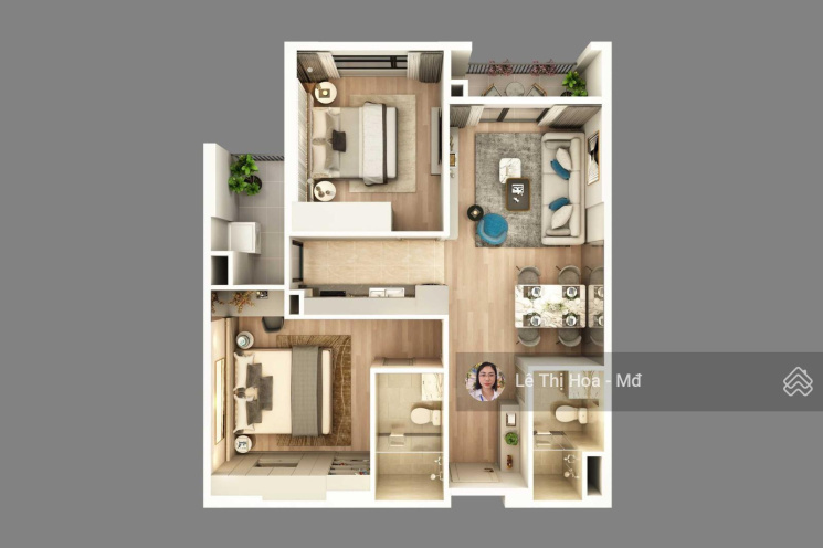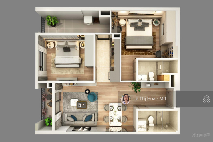 - Diện tích: 66.68m2/ 2 ngủ/ 2 lô gia/ bếp/ khách.