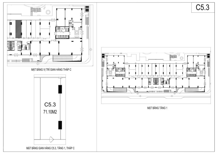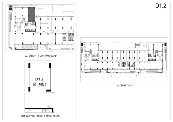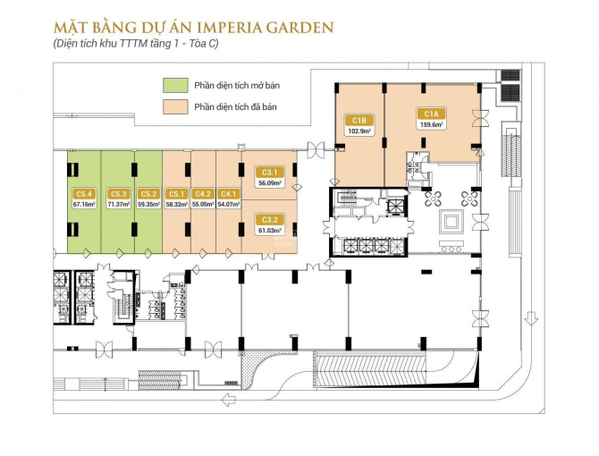 Diện tích Shop từ 48m2 - 104m2.