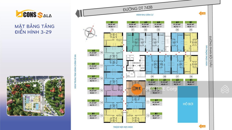 - Tầng trung view Đông Nam.