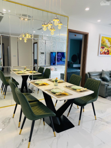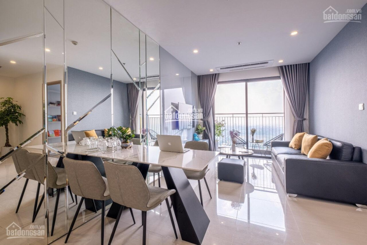 Căn hộ tầng trung view trọn sông Hồng và cầu Nhật Tân hiện đã được trang bị full đồ nội thất dát vàng và đầy đủ đồ điện tử tivi, tủ lạnh, máy giặt, giường tủ bàn ăn, sofa... Khách chỉ cần xách vali vào ở.