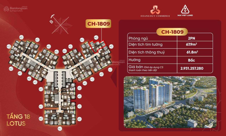 Căn hộ 2 phòng ngủ tầng đẹp - vị trí đẹp giá chỉ từ 2,3 tỷ Hoàng Huy Commerce