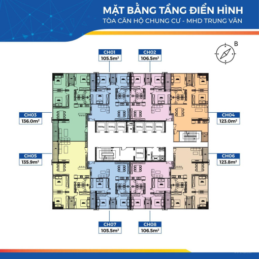 Cơ cấu diện tích CHCC: 106m, 123m và 136m2.