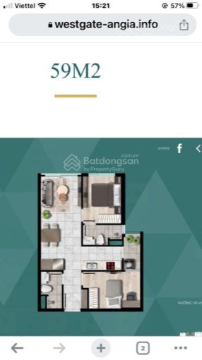 Căn hộ CC 59m2 tầng trên cùng, 2WC, 2PN. Dự án Westgate, đường Tân Túc, Thị trấn Tân Túc, Bình Chánh, Hồ Chí Minh.