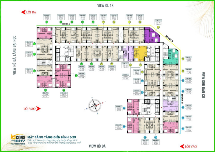 - Diện tích căn hộ từ 50 - 63m2.