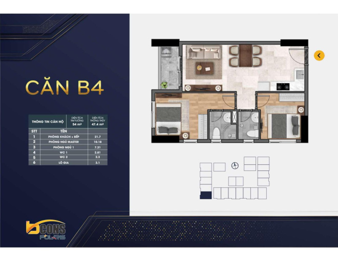 Diện tích căn hộ từ 41 - 85m2 (1PN đến 2 PN).