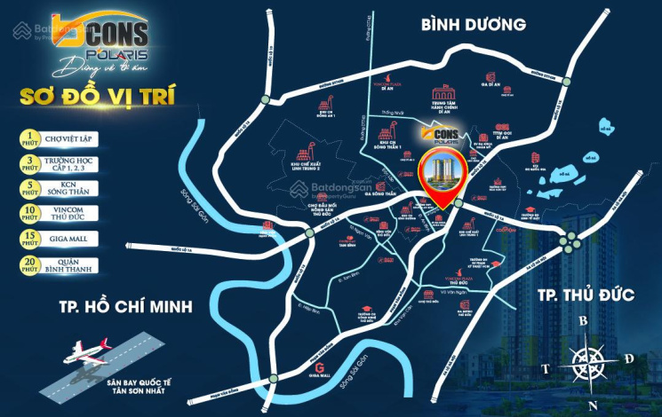 Căn hộ Bcons Polaris nằm trên MT đường Lê Trọng Tấn, Dĩ An, Bình Dương.