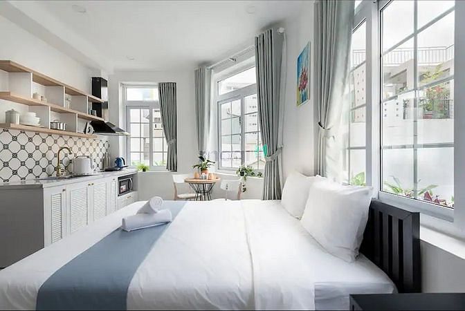 ✔️ Tiện nghi, vật dụng được đang bị đầy đủ và sắp xếp khéo léo: nệm, tivi, tủ lạnh, máy lạnh, tủ đồ, bàn trang điểm.