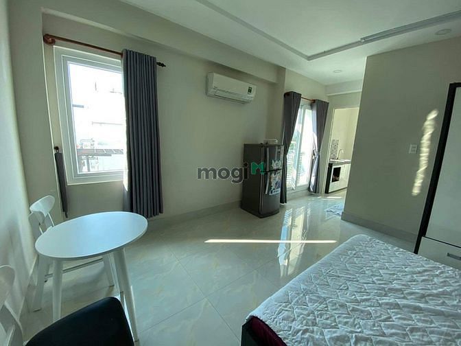 - Khu bếp có bàn bếp, tủ bếp, bếp từ, tủ lạnh, hút mùi, đầy đủ ánh sáng, gió và không khí vào phòng.