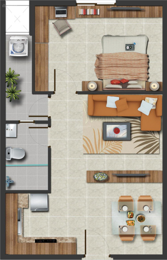 Căn hộ Hưng Ngân ngay bệnh viện Q12, DT 56m2, 1PN, 1WC. Có thể thiết kế thành 2 phòng ngủ.