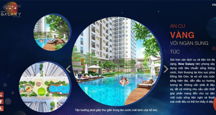- Tiện ích Căn hộ New Galaxy: Hơn 56 căn Shophouse ở tầng triệt, trung tâm thương mại, siêu thị, Hồ bơi 600m2, trường mầm non, khu vui chơi trẻ em, sân thể thao đa năng, sân cỏ đa năng, khu fitness ngoài trời, Gym, Spa & Coffee.