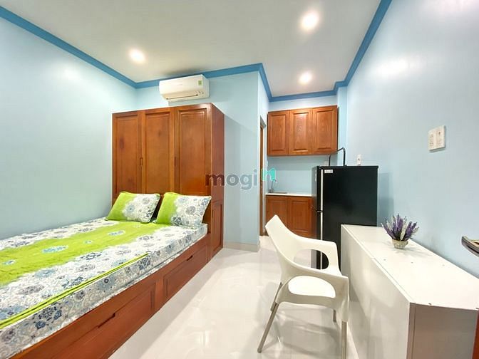✔️Phòng được trang bị nội thất hiện đại, mới 100%, đầy đủ tiện nghi gồm: Máy lạnh, Tủ lạnh Máy giặt (có sân phơi rộng rãi, thoải mái), Nước nóng năng lượng mặt trời, Giường, nệm, drap, gối, Tủ quần áo, Kệ bếp riêng, Bàn làm việc riêng, Nhà vệ sinh riêng