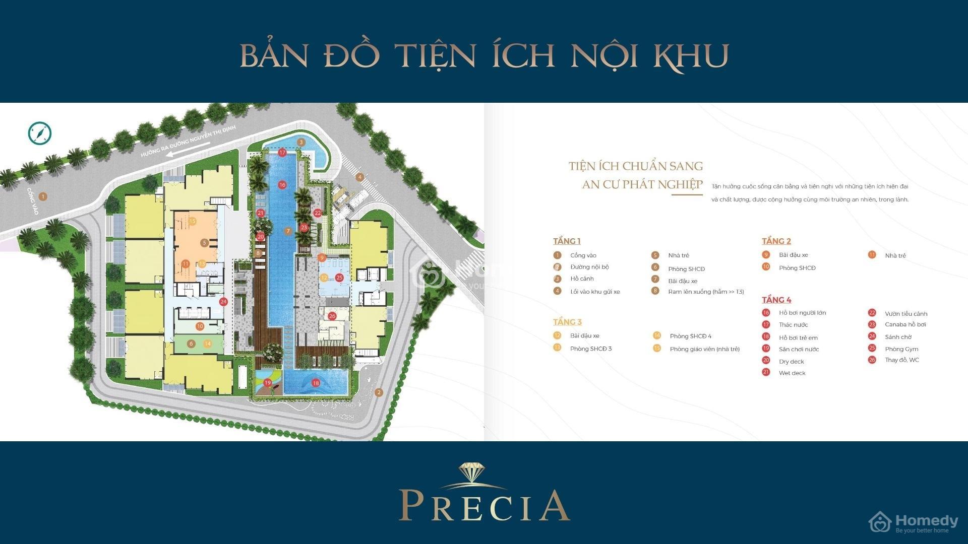 Quy mô dự án gồm 1 khối tháp, cao 23 tầng, với 1 tầng hầm. Căn hộ Precia có 1 tầng khối đế thương mại và 22 tầng căn hộ.