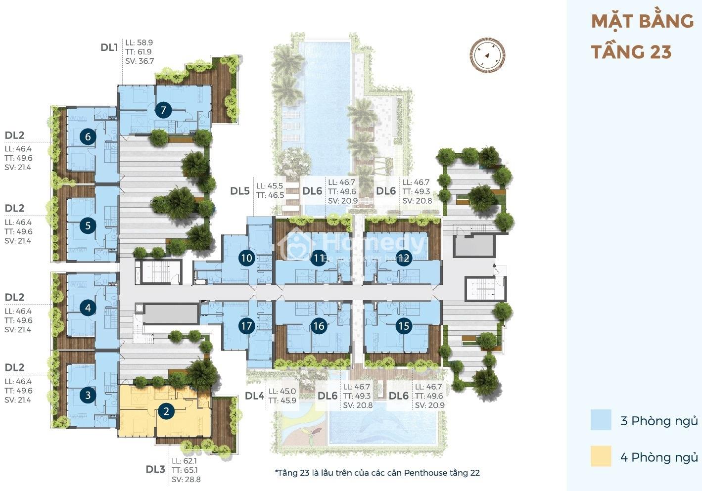 Căn hộ Penthouse mặt tiền đường Nguyễn Thị Định Quận 2, diện tích 190m2, thiết kế 4 phòng ngủ cùng sân vườn đẳng cấp.