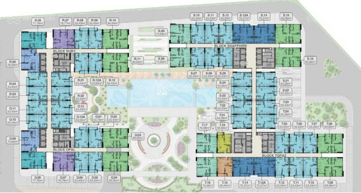 + Diện tích căn: 53m2 (1PN, 1 WC), 75m2 (2PN 2WC), 95m2 (3PN 2 WC).
